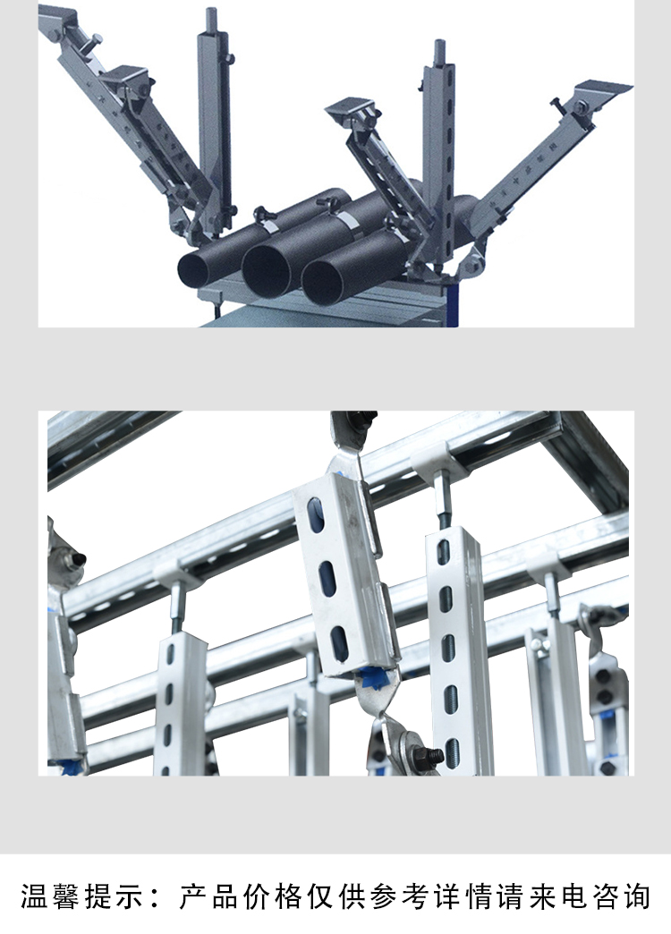 抗震支架在地震中應對建筑機電工程設施給予可靠的保護,承受來自任意水平方向的地震作用;經抗震加固后的建筑給水排水、消防、供暖、通風、空調、燃氣、熱力、電力、通訊等機電工程設施,當遭遇到本地區抗震設防烈度的地震發生時,可以達到減輕地震破壞,減少和盡可能防止次生災害的發生,從而達到減少人員傷亡及財產損失的目的。